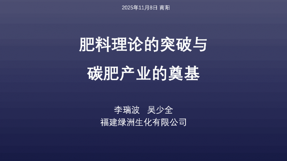 今天分享的话题,肥料理论的突破与碳肥产业的奠基。