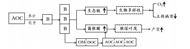 注:AOC为有效碳B为微生物OM为固态生物质DOC为水溶大分子有机碳