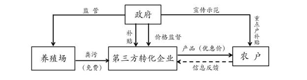 ◇沼液不可能像固态粪便那样从区域内各养殖场集中到肥料厂制造堆肥,只能由转化运营单位因地制宜在养殖场附近进行分解,并由分解池直接抽运到终端用户或农业区水肥一体化配肥站。这就产生一系列问题:分解池建在哪?养殖场应怎样支持?农业区配肥站用地?怎样在运营单位与直接用户之间建立契约型合作?这一切都需要当地政府介入和监督,所以这一新业态就可简称“三国四方”: