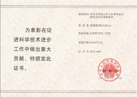 3 灾害及突发公共卫生事件流行病学及应对策略研究 谭红专;胡国清;黄昕;周价;李杏莉;刘爱忠;杨土保 中南大学 2013
