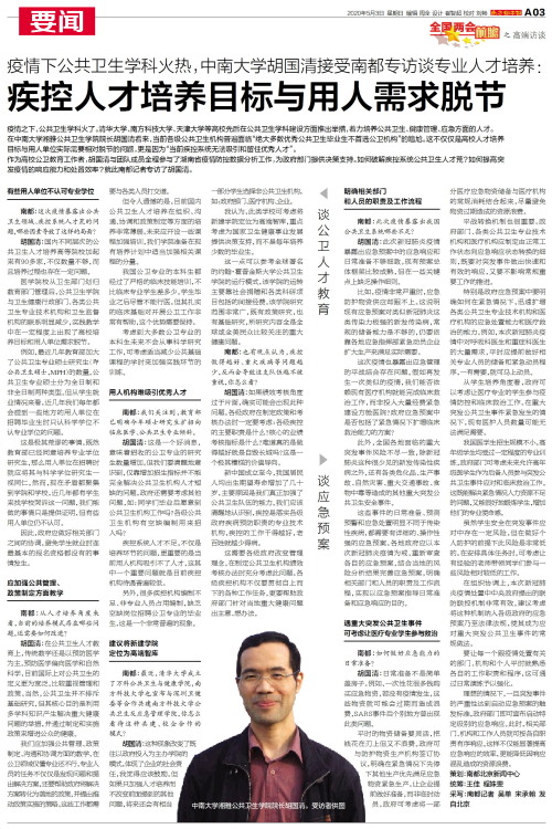 胡国清:国内不同层次的公共卫生人才培养高等院校加起来有90多家,不仅数量不够,而且培养过程也存在一定问题。