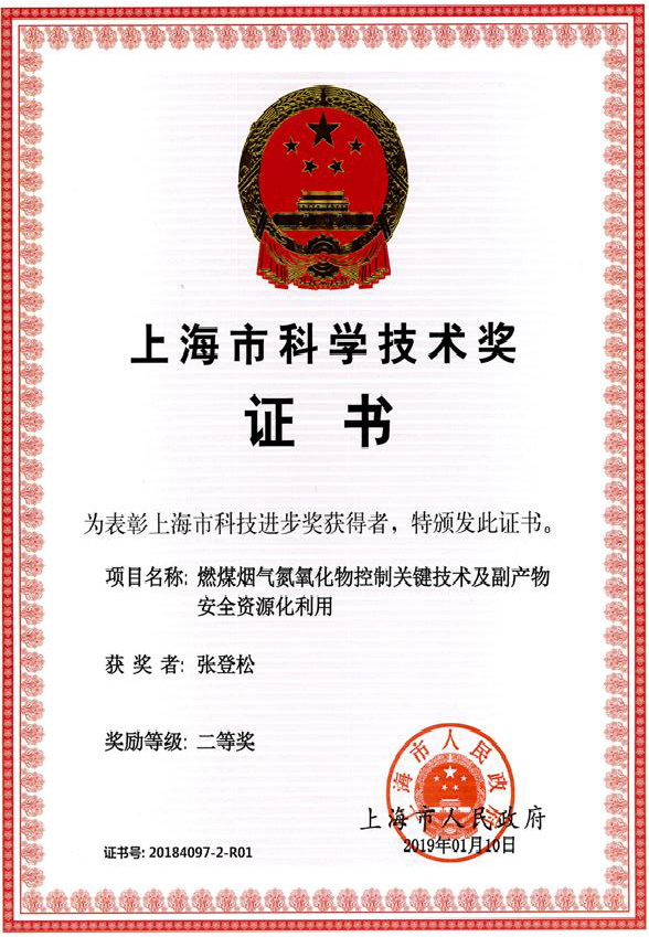 18、燃煤烟气氮氧化物控制关键技术及副产物安全资源化利用,张登松; 王琼; 施利毅; 杨利香; 樊钧; 刘少光; 李红蕊; 康明; 汤立杰; 钱耀丽,上海市人民政府, 科技进步, 省部二等奖, 2019.
