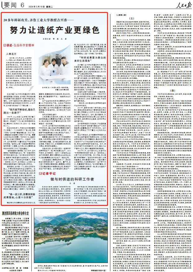 一路走来,吉兴香始终在探寻绿色造纸行业的学科前沿。
