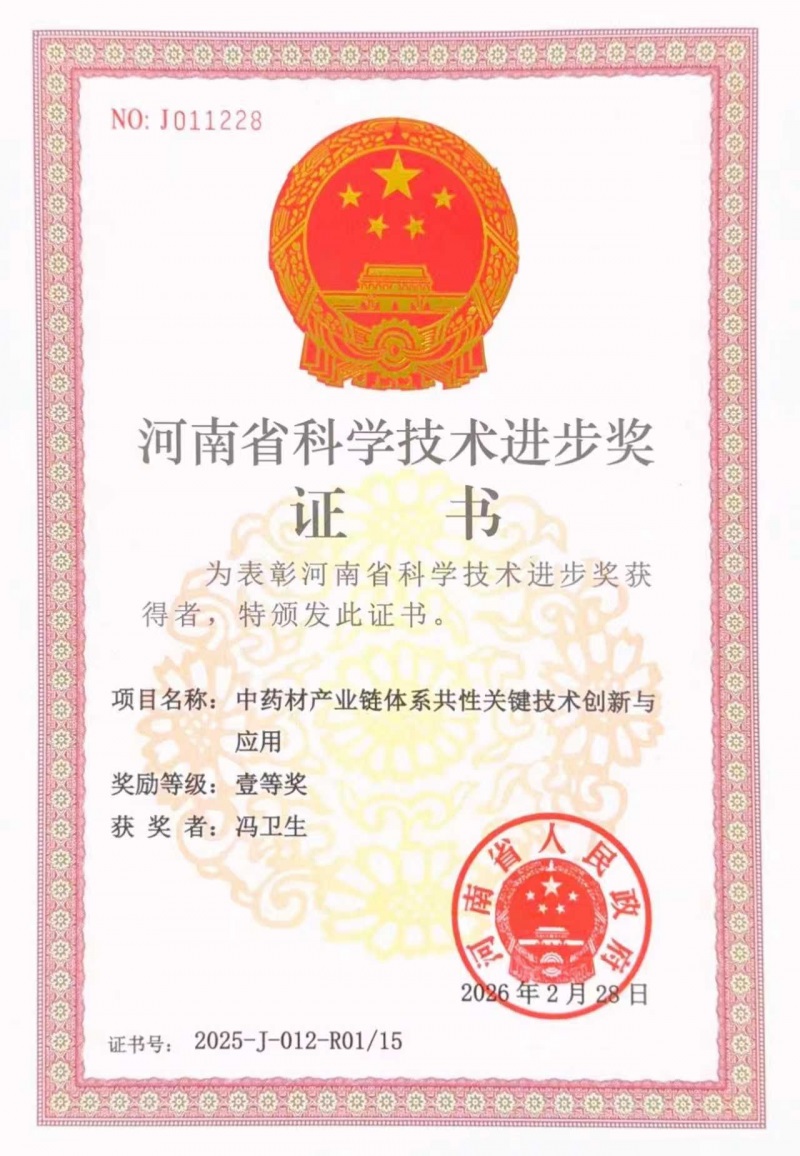 1 中药材产业链体系共性关键技术创新与应用;2025年度河南省科学技术进步奖一等奖