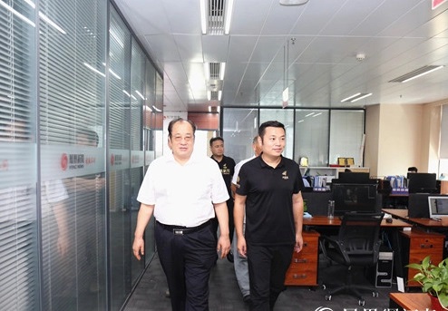 2018年9月6日上午,河南省政协常委、省慈善总会副会长、省传统文化促进会会长马文章一行到凤凰网河南频道调研,在凤凰网河南频道CEO崔津侨陪同下,马文章一行参观了演播厅、新闻中心,实地感受了凤凰网河南的发展情况。