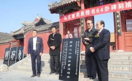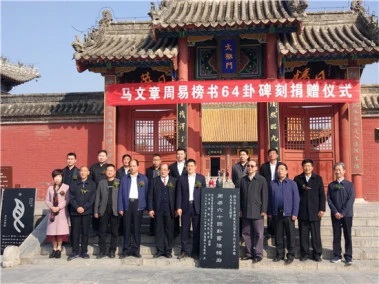 2019年4月22日上午,适逢第37届中国洛阳牡丹文化节举办之际,书法作品展碑刻暨《马文章先生周易榜书六十四卦书法碑刻》捐赠仪式在洛阳国花园举行。河南省政协原副主席、省慈善总会会长邓永俭,河南省慈善总会秘书长刘高贵,河南省政协常委、省传统文化促进会会长马文章,洛阳市慈善总会会长甘茹华等领导出席捐赠仪式并为碑刻揭碑。