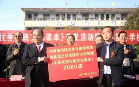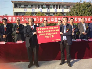 2017年11月4日,河南省政协常委、河南省传统文化促进会会长马文章在家乡周口接连展开两项公益捐赠行动。上午,马文章向淮阳太昊陵捐赠了“周易榜书六十四卦书法碑刻”;下午,带领团队向沈丘县刘湾镇中心中学捐赠了由马文章担任主编的《中华优秀传统文化读本》2000本。