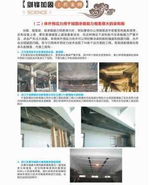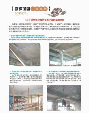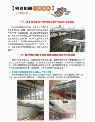 关键词:无粘结钢绞线、高效体外预应力、大梁加固、楼面板加固、减小梁截面高度、拔柱、拆墙、水池池壁加固、施工照片。